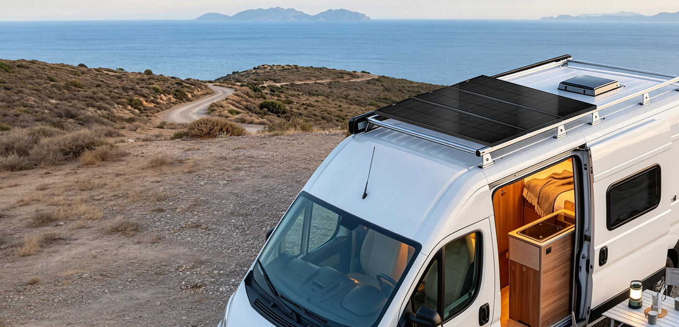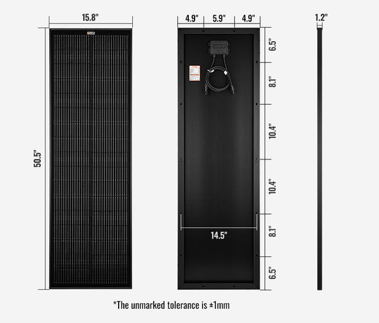 MEGA 100 SLIM ONYX | 100 Watt Slim Solar Panel | Compact 12V Off-Grid Narrow Solar Panel for Vans, Overlanders, Boats | 25-Year Output Warranty