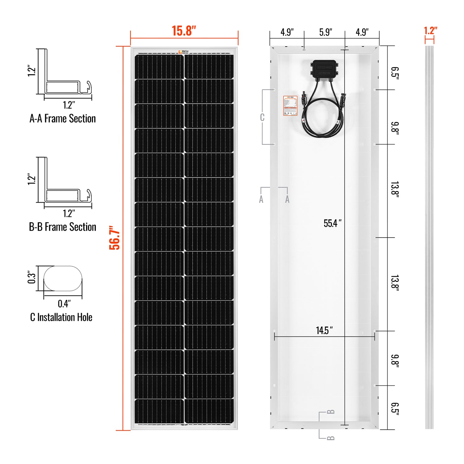 MEGA 100 SLIM SLX | 100 Watt Slim Solar Panel | Compact 12V Off-Grid Narrow Solar Panel for Campers, Overlanders, Boats | 25-Year Output Warranty | UL Certified