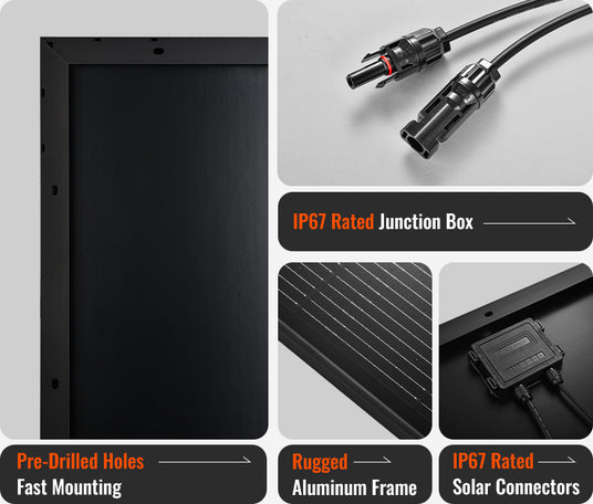 MEGA 200 ONYX | 200 Watt Solar Panel | Premier 12V Off-Grid Solar Panel for RVs Cabins, Boats | 25-Year Output Warranty