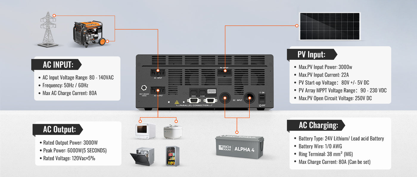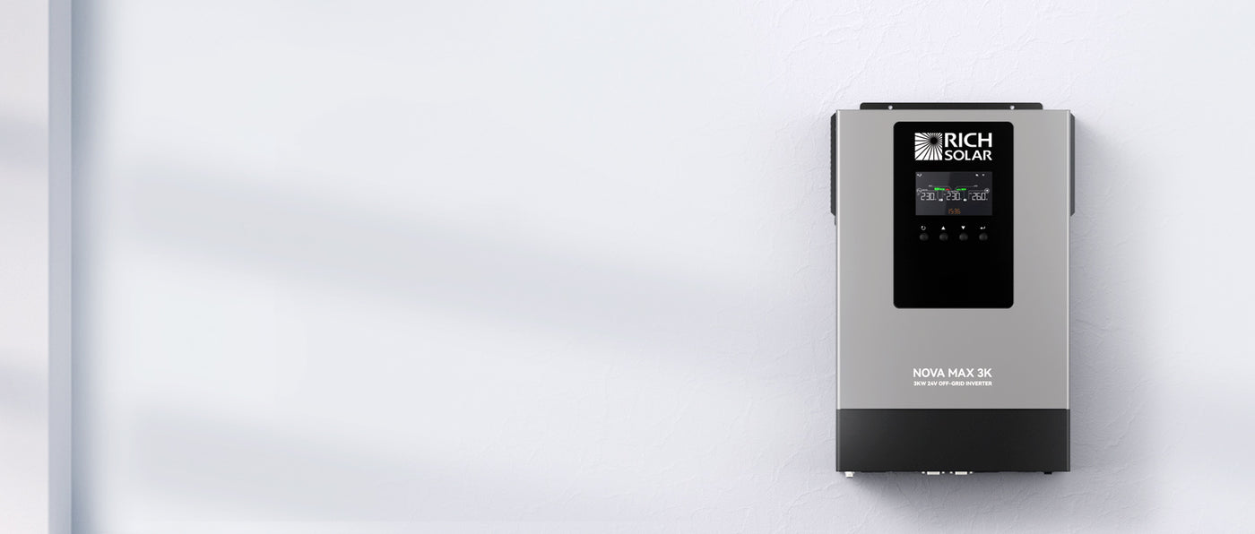 - The NOVA MAX 3K is a compact, all-in-one hybrid inverter combining a 3000W pure sine wave inverter, MPPT solar charge controller, and battery charger in one unit.